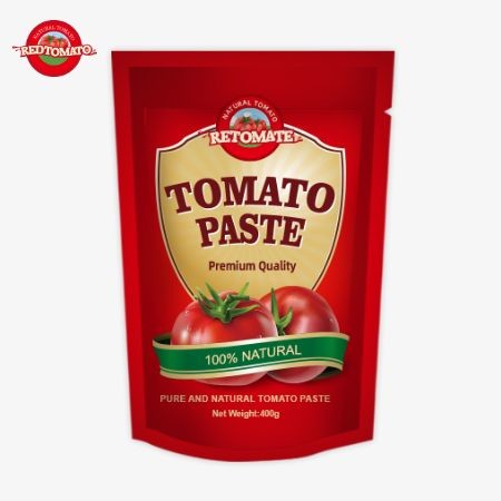 The 400g stand-up sachet of tomato paste is a convenient option, favored for its practical design and versatility.